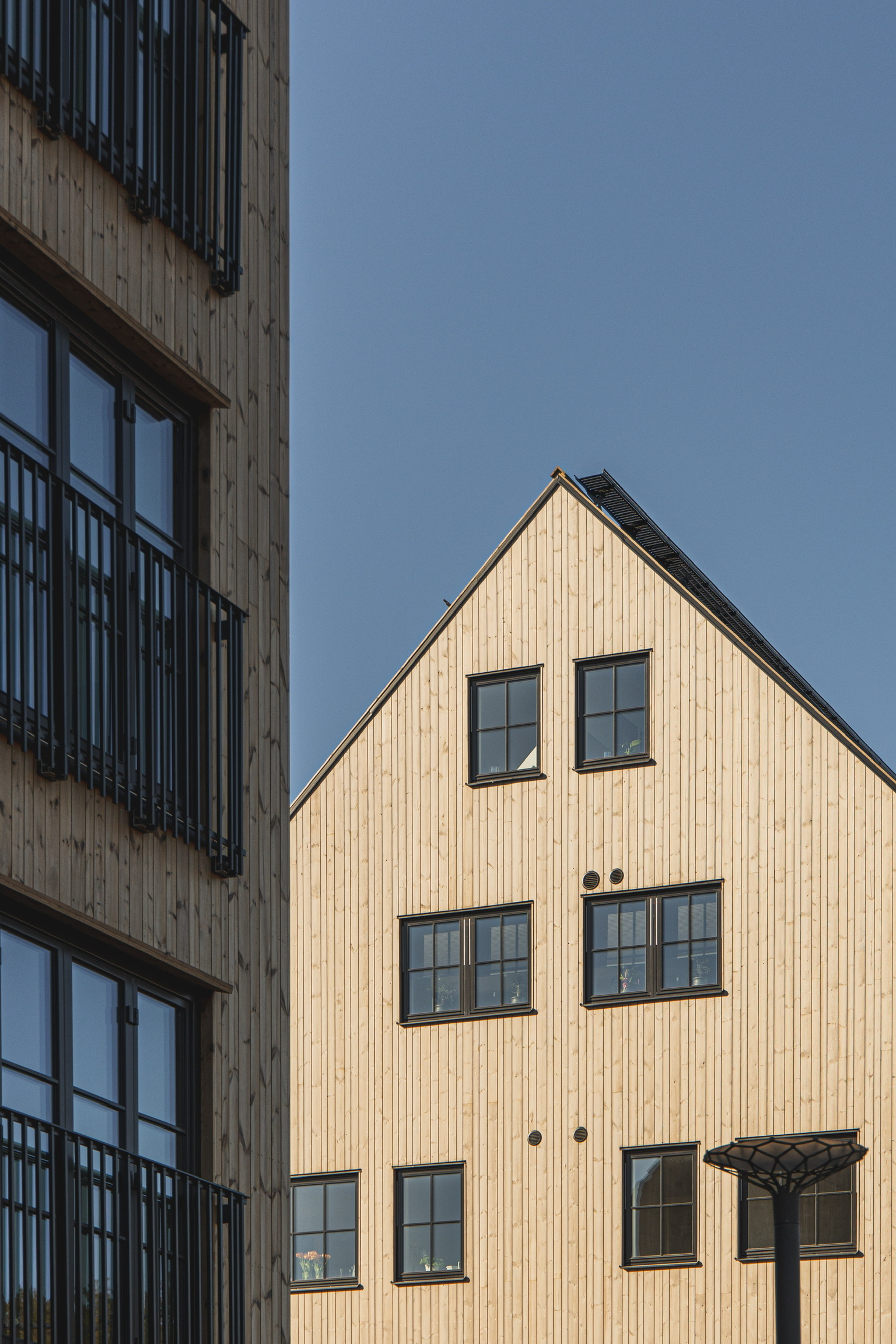 Sjöstadskajen är en del av området Jungfrusunds Sjöstad där husens olika uttryck samspelar och kompletterar varandra.